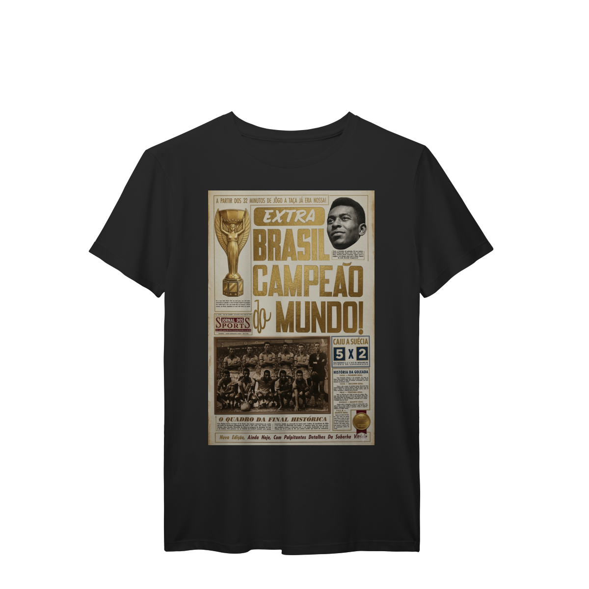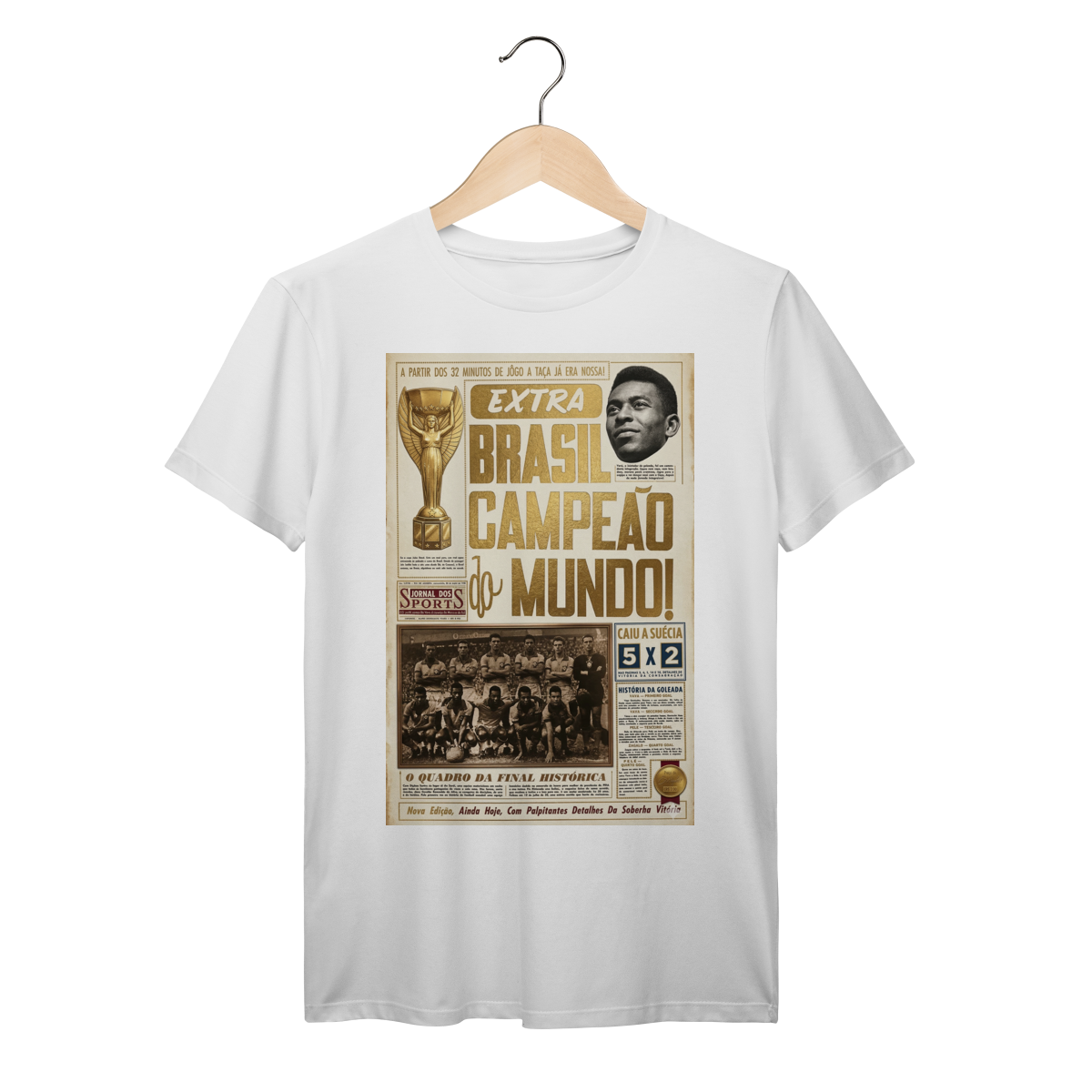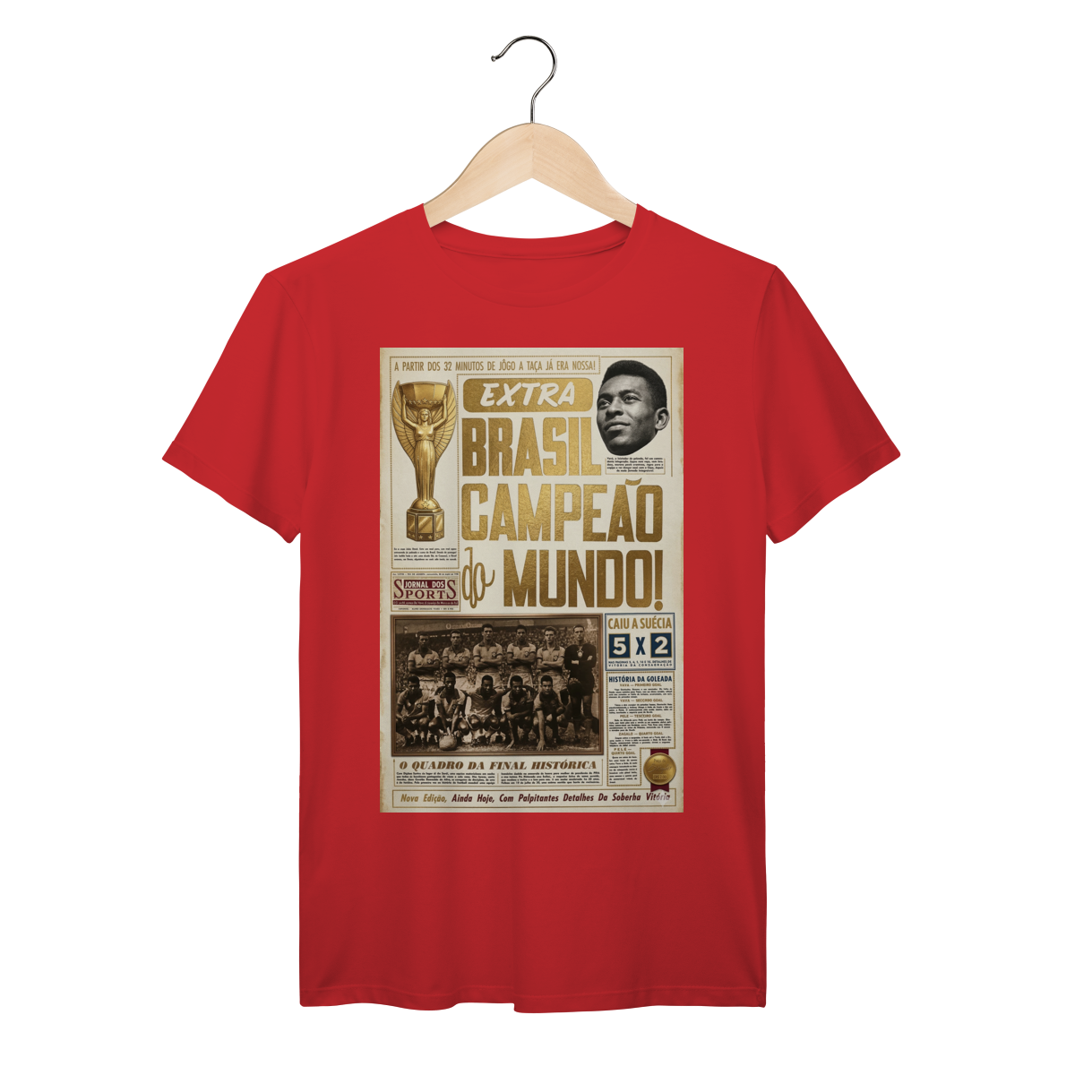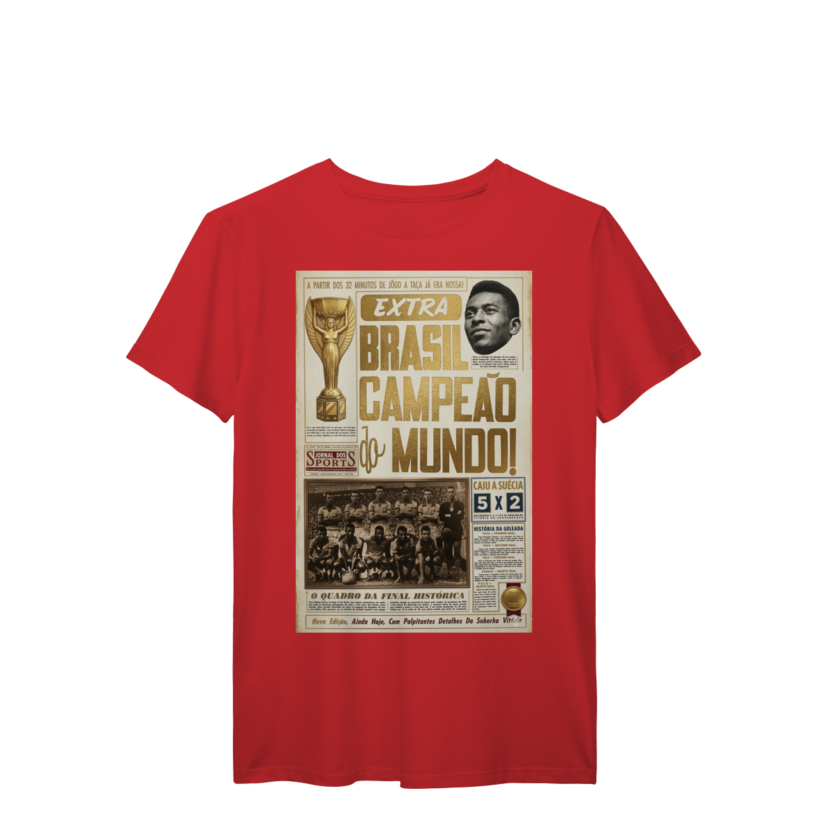 Relembre o primeiro título mundial do Brasil com essa estampa exclusiva da capa do Jornal dos Sports de 1958 sobre a conquista nacional.